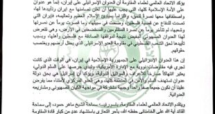 بسم الله الرحمن الرحيم بيان تضامني مع الجمهورية الإسلامية الإيرانية وسماحة القائد السيد علي الخامنائي (حفظه الله) صادر عن الاتحاد …